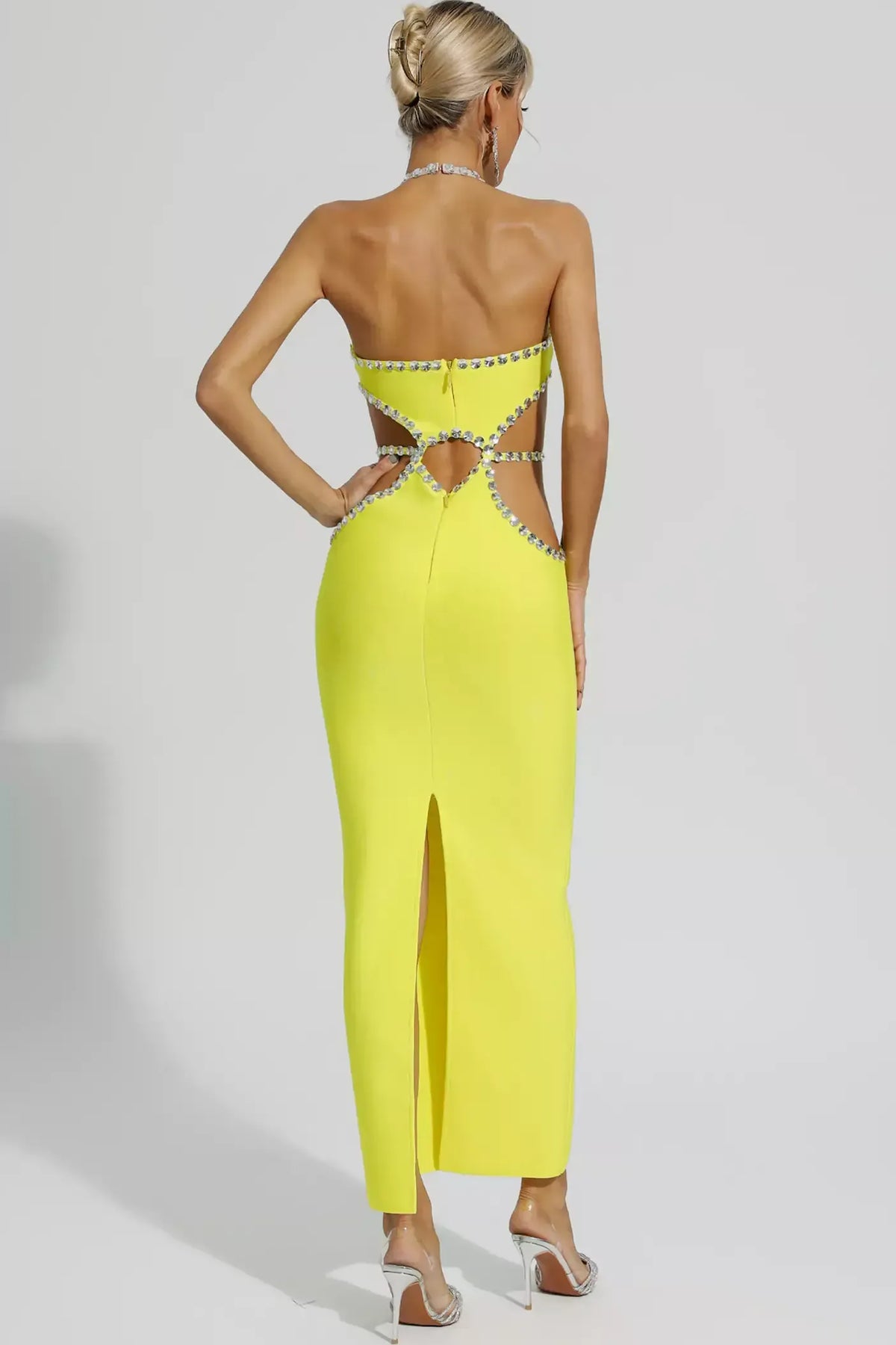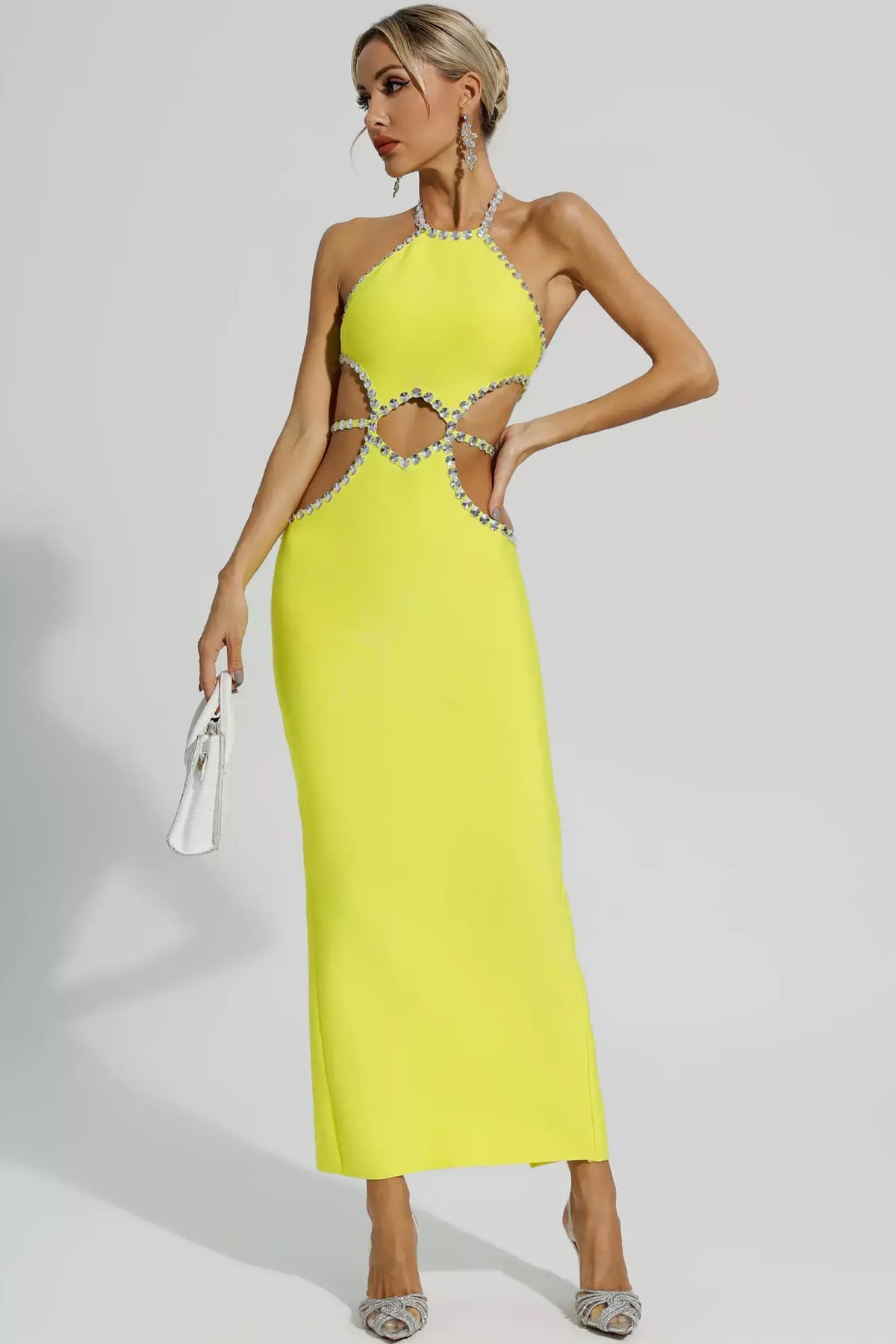 Rhinestone Cut-Out Halter Neck Maxi Dress
